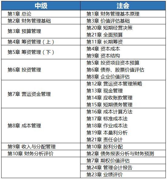 中级会计职称的会计实务,财务管理与注会的会计与财务成本管理。